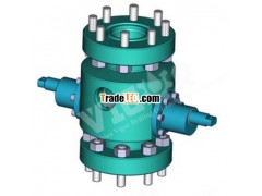 The Rod BOP is typically selected for mounting between a tubing head and a flanged wellhead drive in a new well installation, provides studded flanged connection for rigid and safe support of the wellhead drive. The flow-tee includes two side ports, typically one for the production fluids and the other to gauge pressure, take sample fluids, flush the well etc. The top studded flange connecting includes a box thread LP port to be used when servicing the rod string.